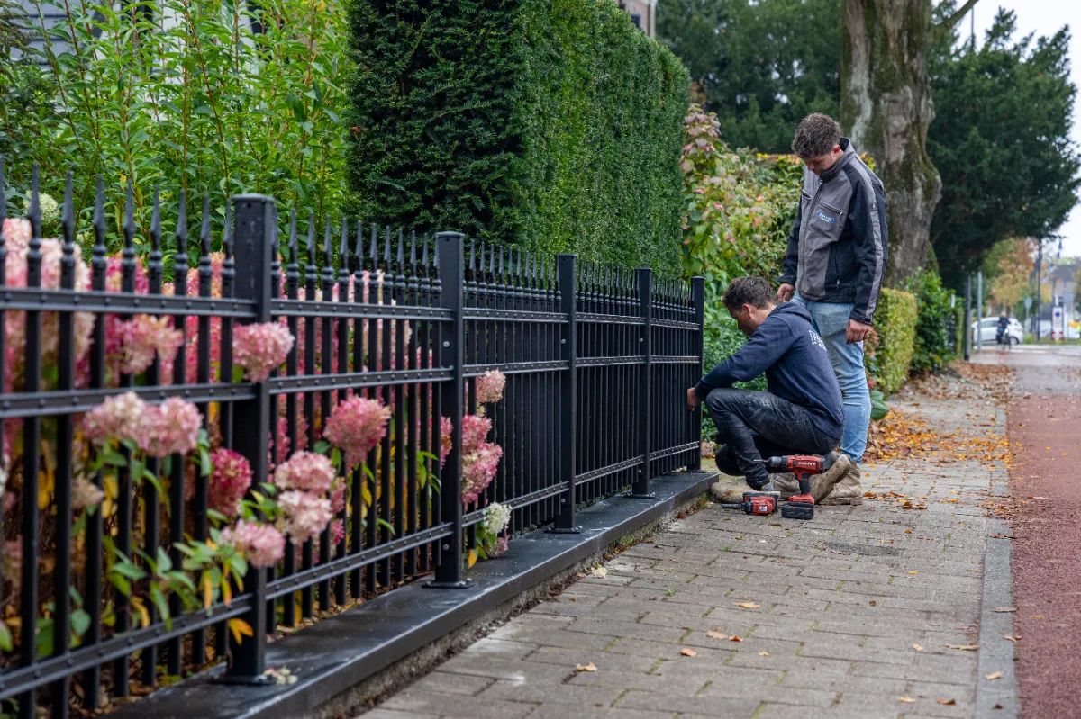 Wanneer het ontwerp van uw inrijpoort is goedgekeurd, begint het productieproces in onze eigen werkplaats. Onze vakmensen maken uw toegangspoort met precisie en aandacht voor detail.